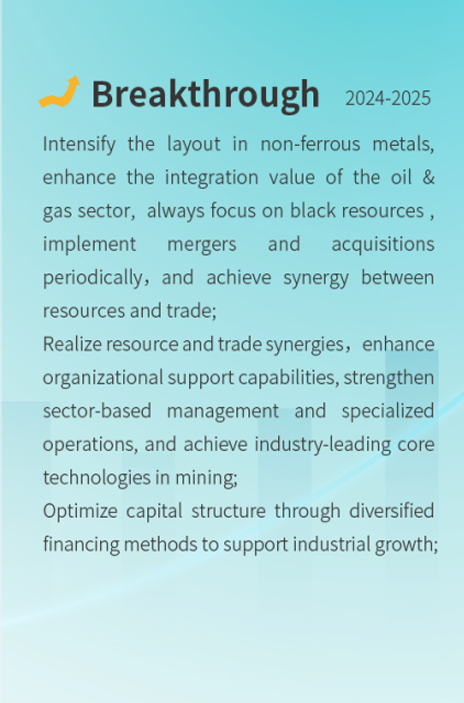 Deep ploughing into the resource field and exploring new industries.